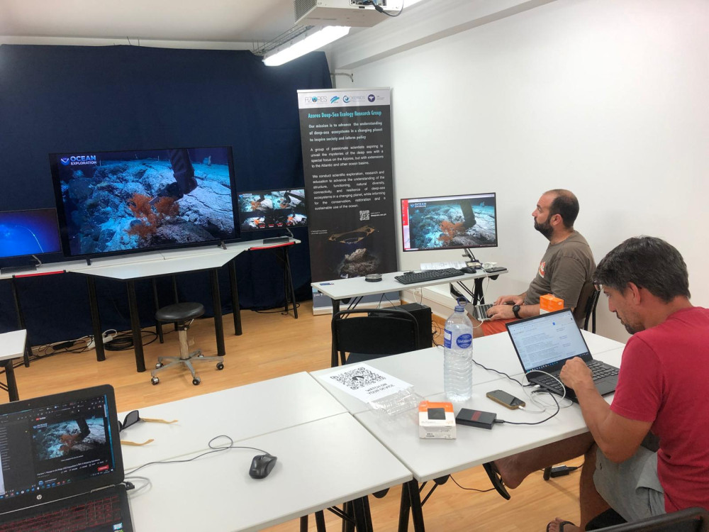 In the context of the ASPIRE initiative and following IMAR's participation in the 2018 ASPIRE Workshop in Washington, the project enabled the establishment of a Exploration Command Center on Faial Island to support the NOAA Ship Okeanos Explorer 2020 mission—"Voyage to the Ridge 2020" (EX2004, EX2005, EX2006). The mission focused on collecting baseline data through bathymetric mapping and water column studies, as well as exploring unexplored areas of the Mid-Atlantic Ridge, the Azores Plateau, and the Charles Gibbs Fracture Zone. IMAR was actively involved throughout 2019 in defining dive and mapping areas, mission planning, and preparing the Command Center. The center enabled real-time monitoring of dives, direct intervention during missions, and live mapping activities. All data collected during the mission are openly accessible, contributing significantly to the knowledge of Azorean seabed mapping, imagery, and marine biodiversity. Beyond the scientific gains, the Exploration Command Center positioned the Azores at the forefront of deep-sea exploration, fostering opportunities for ocean literacy, civil society engagement, and involvement by regional decision-makers in scientific discoveries.