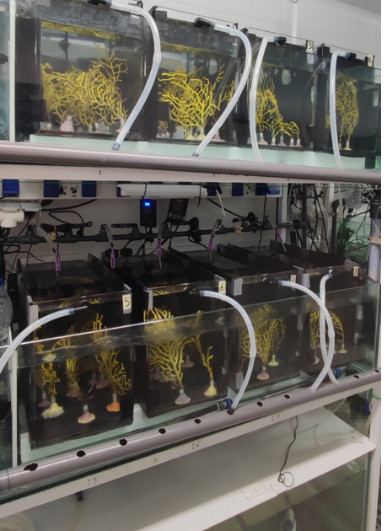 We have been working on ex-situ exposure experiments to measure effects of IPCC projected changes in temperature on key octocoral species in the Azores, namely Dentomuricea aff. meteor, Acanthogorgia armata.